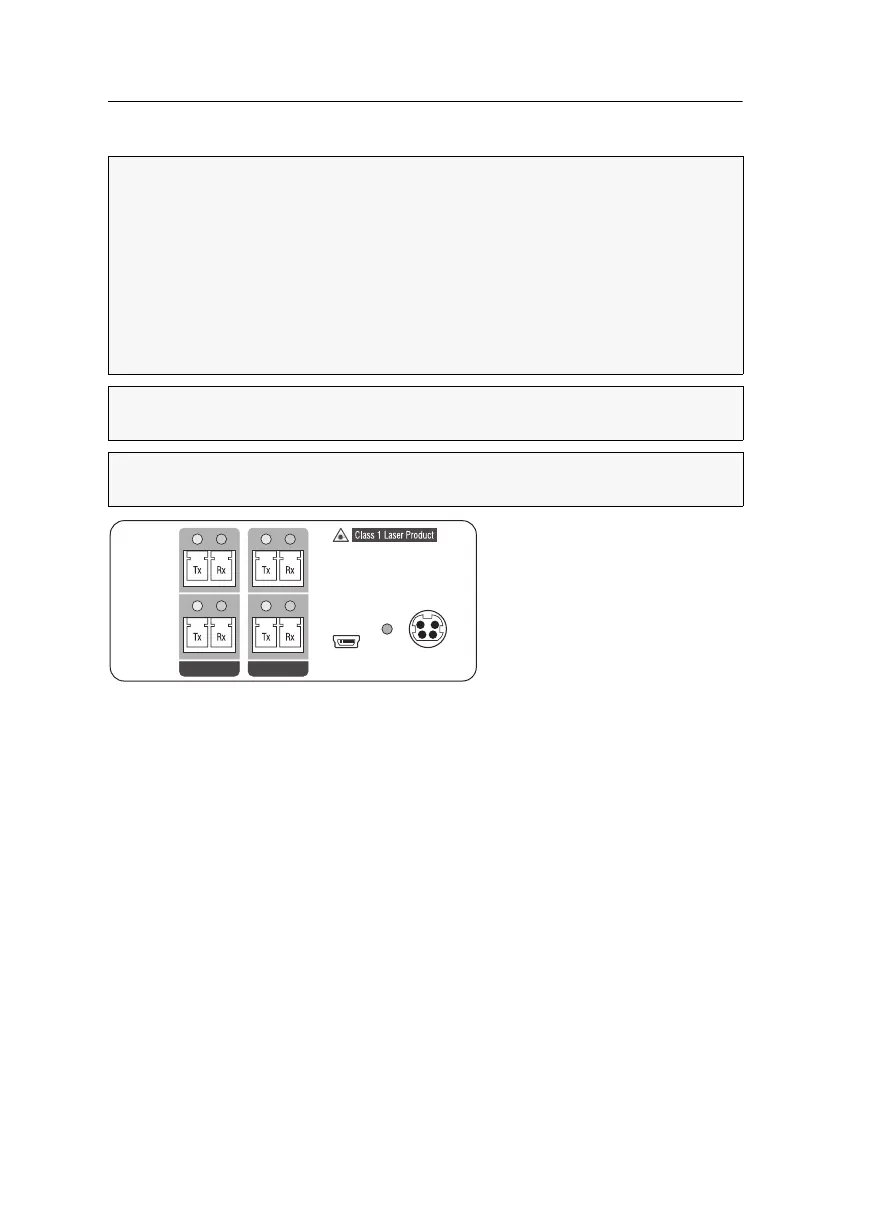 Always connect optical connections or cover them with protection caps on page 3