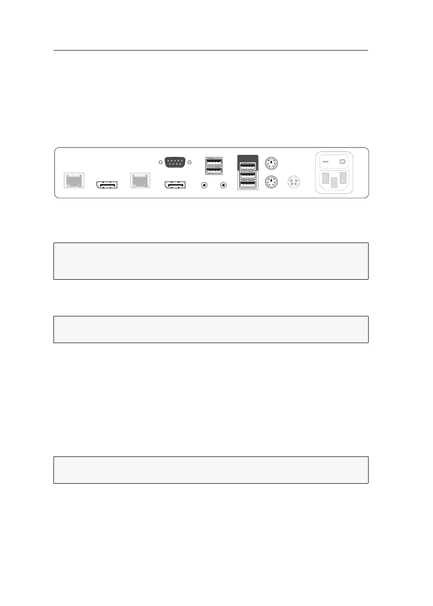 USB Devices: Connect any USB devices to these interfaces. The data stream of the