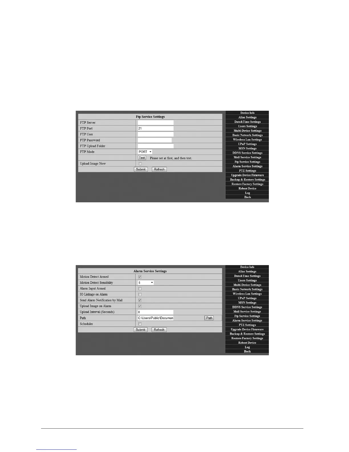 see Secon 3.6 - Alarm Service Sengs). Enter your FTP server details in the elds provided.