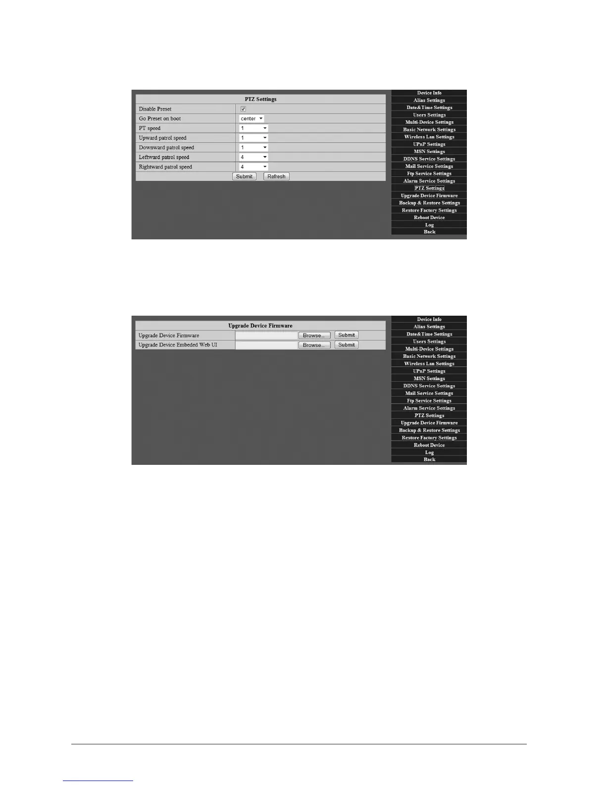 This screen allow uploading of updated Firmware les and Web User Interface sengs. These