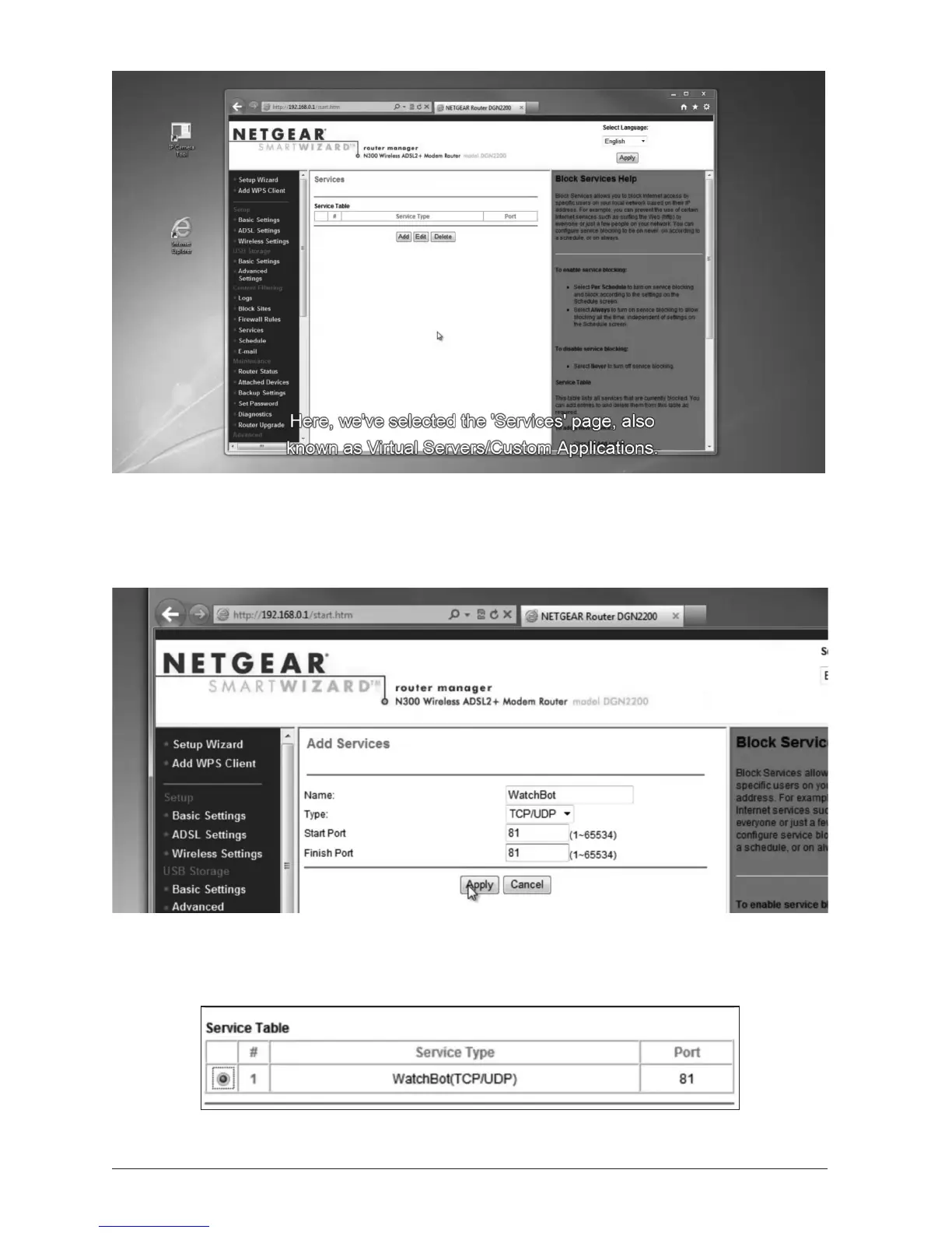 Here we are logged in to the router admin pages. We have selected the ‘Services’ page, also
