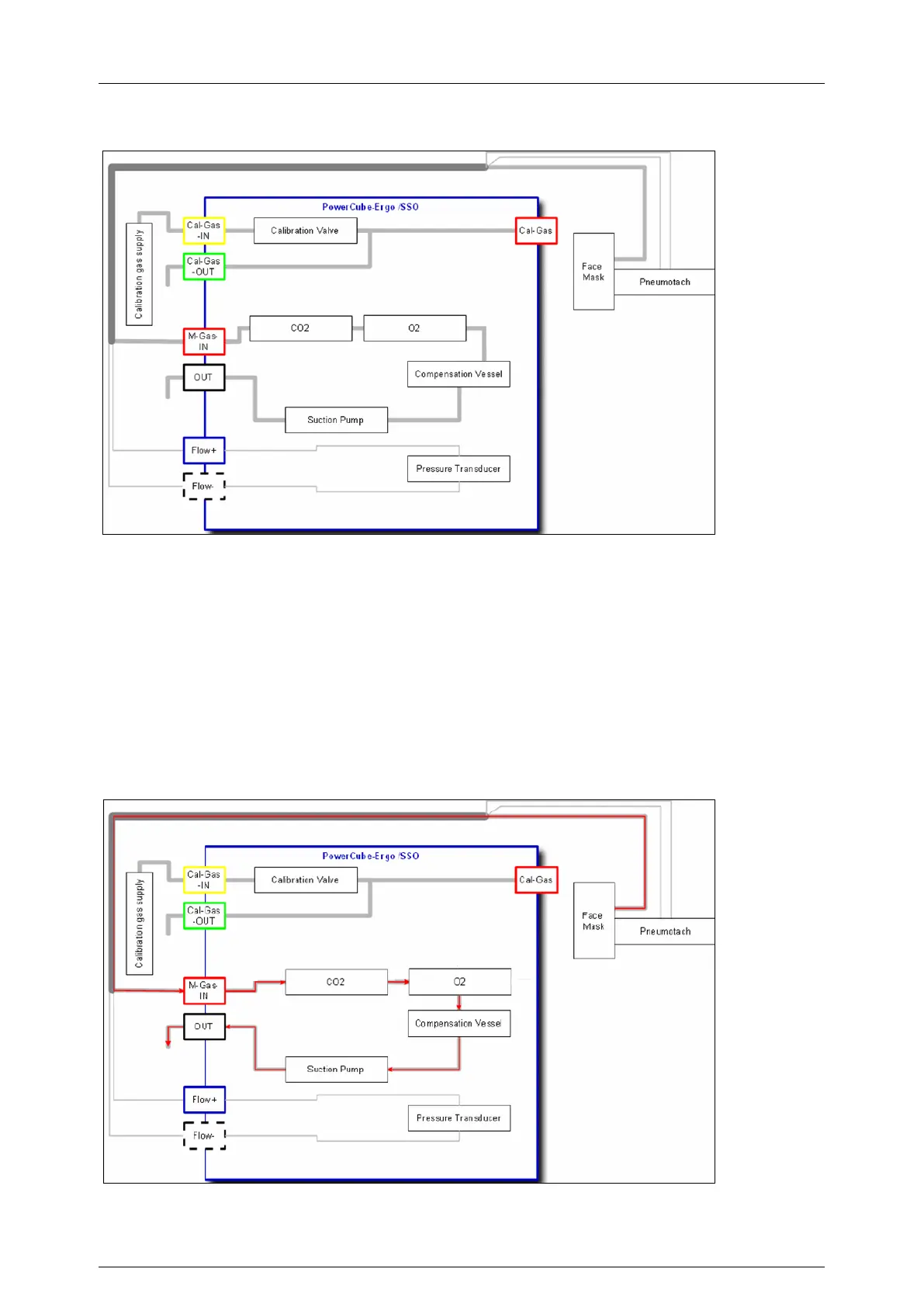 Pict.: Block diagram PowerCube-Ergo, gas flow during an ergopirometry-measurement