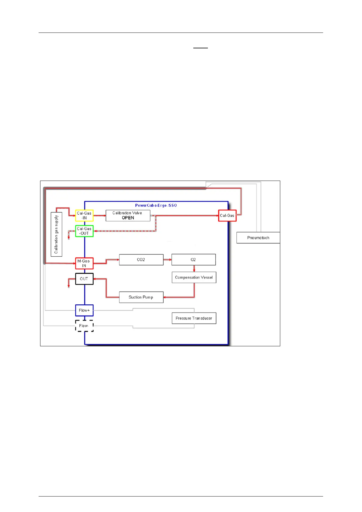 Pict.: Block diagram PowerCube-Ergo, gas flow during a ergo-calibration (gas calibration),