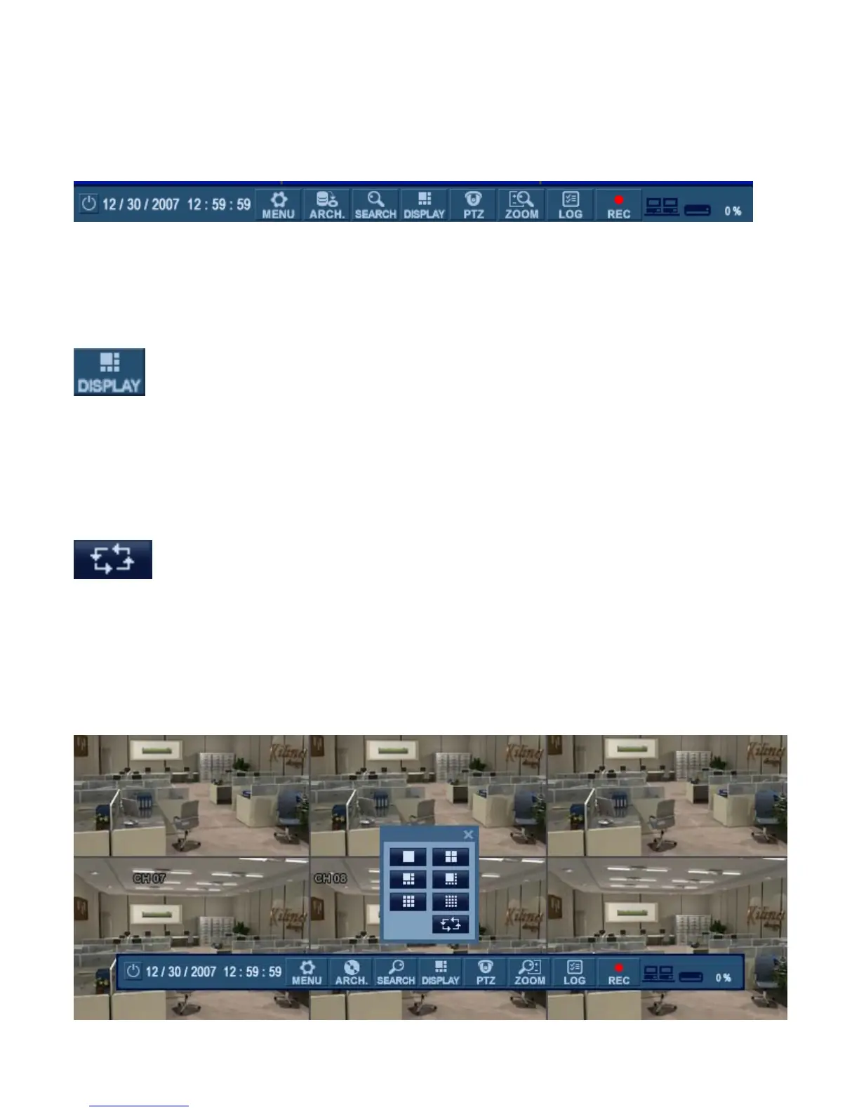 Select the ‘DISPLAY’ button and the screen division menu will appear.