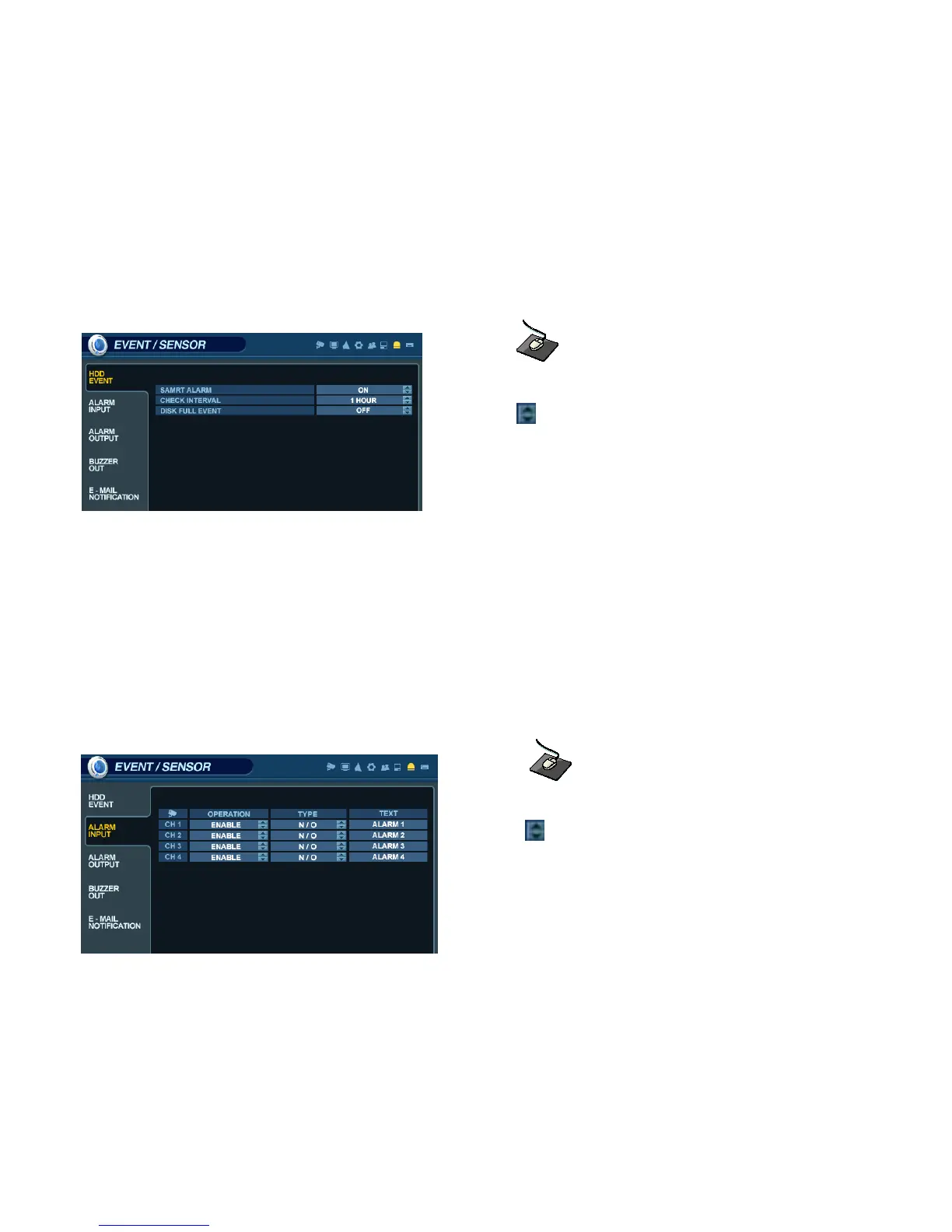 Click on the ‘ALARM INPUT’ menu, and choose any field.