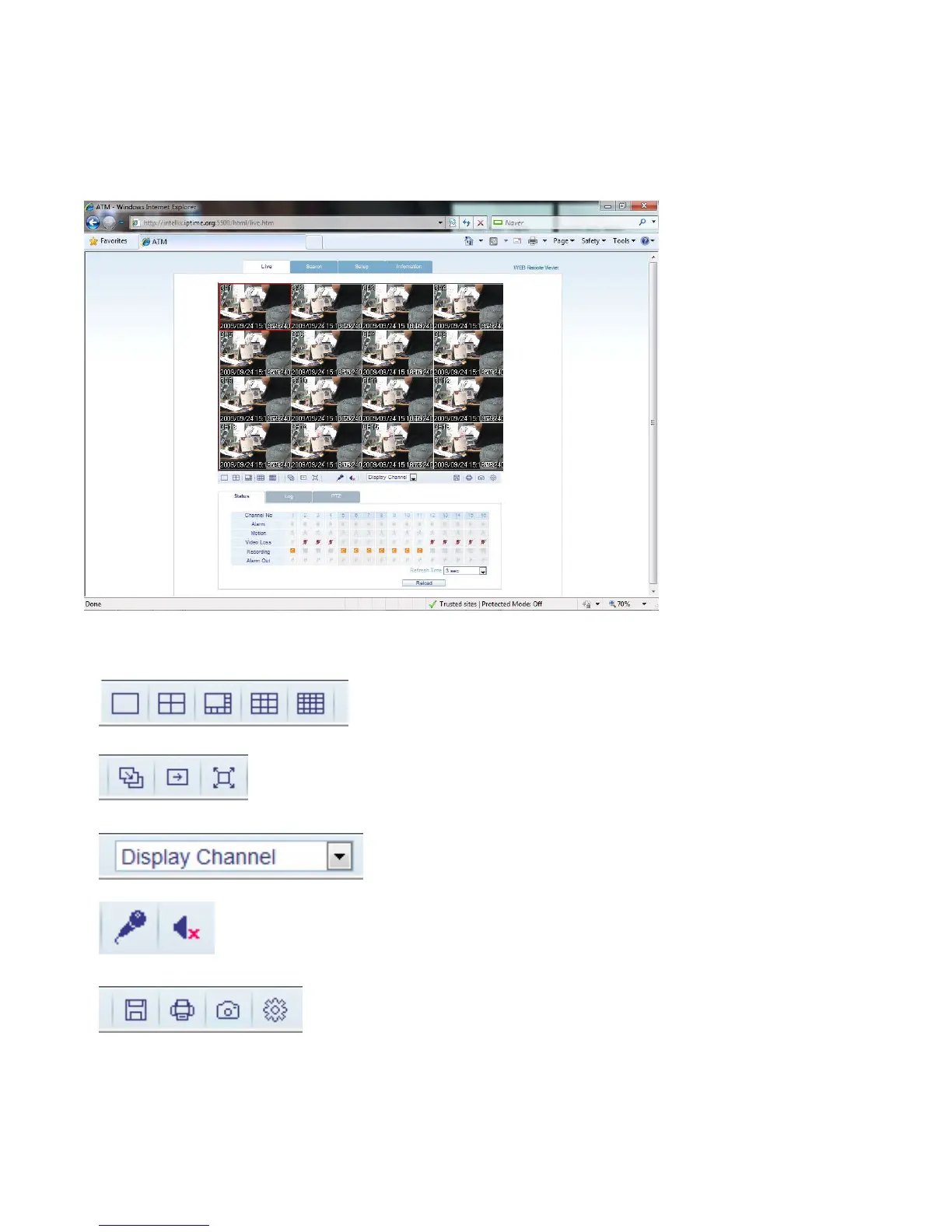 - Select Live View Screen Division (1, 4, 8, 9, 16-channel modes)