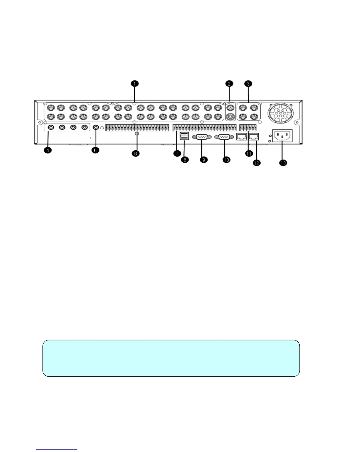 ⑪ RS-485 : Serial Interface for PTZ device connection and control