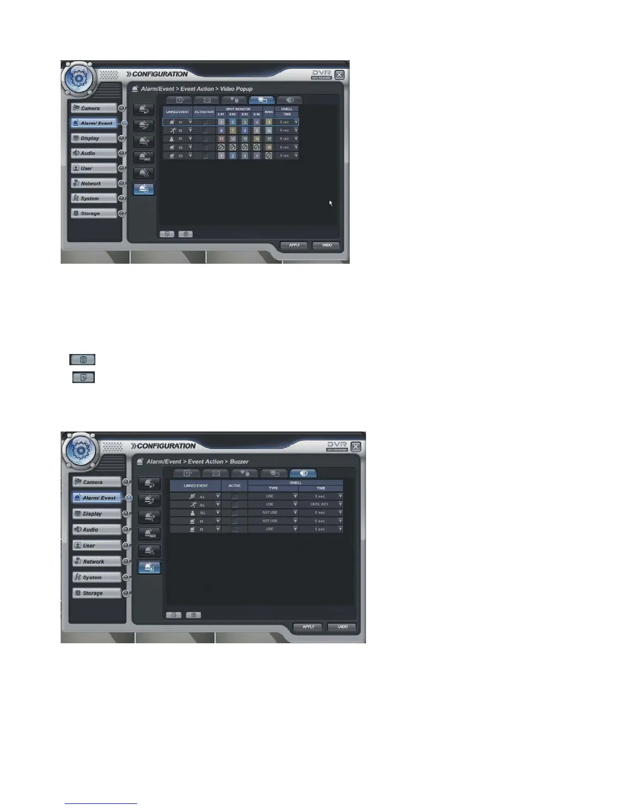 - After selecting the event (Alarm, motion, Video loss, User Defined Event) for buzzer, tick on/off