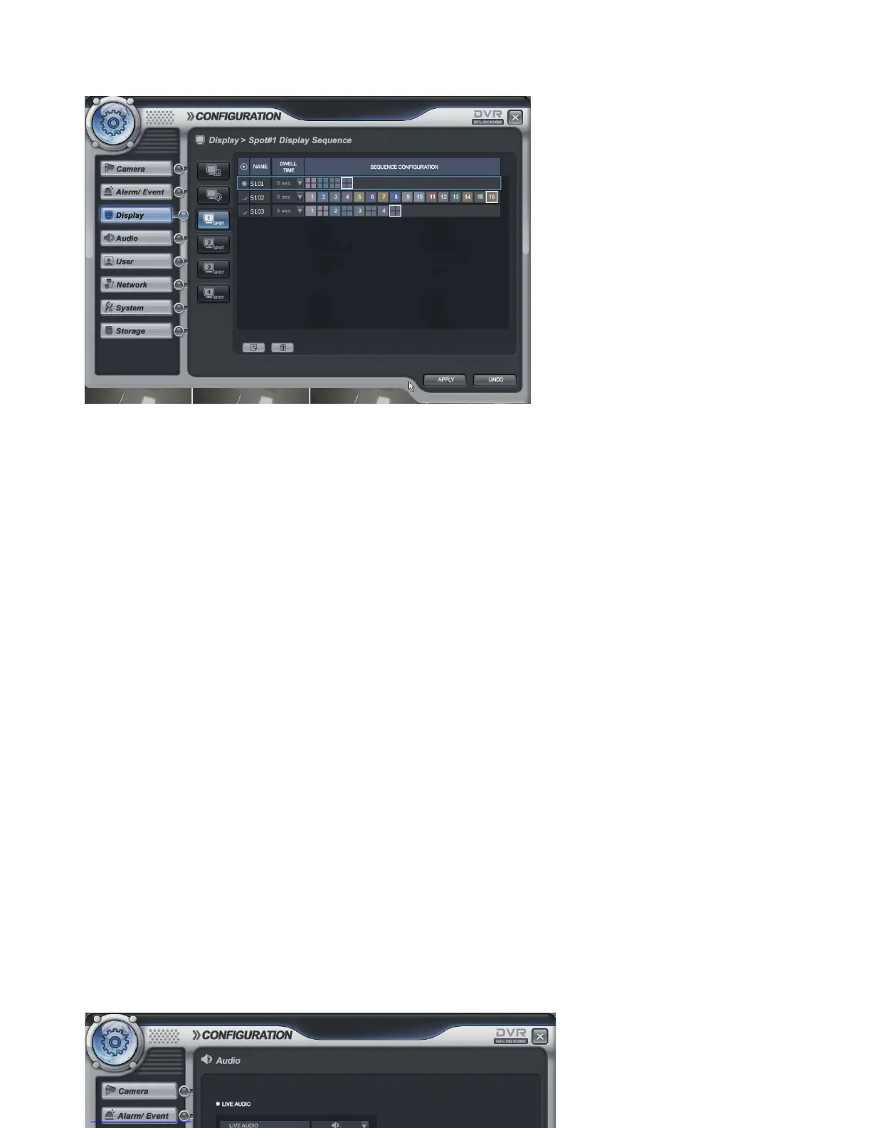 After clicking mouse right button from live display, select the “SEQUENCE PLAY” or “SEQUENCE STOP”