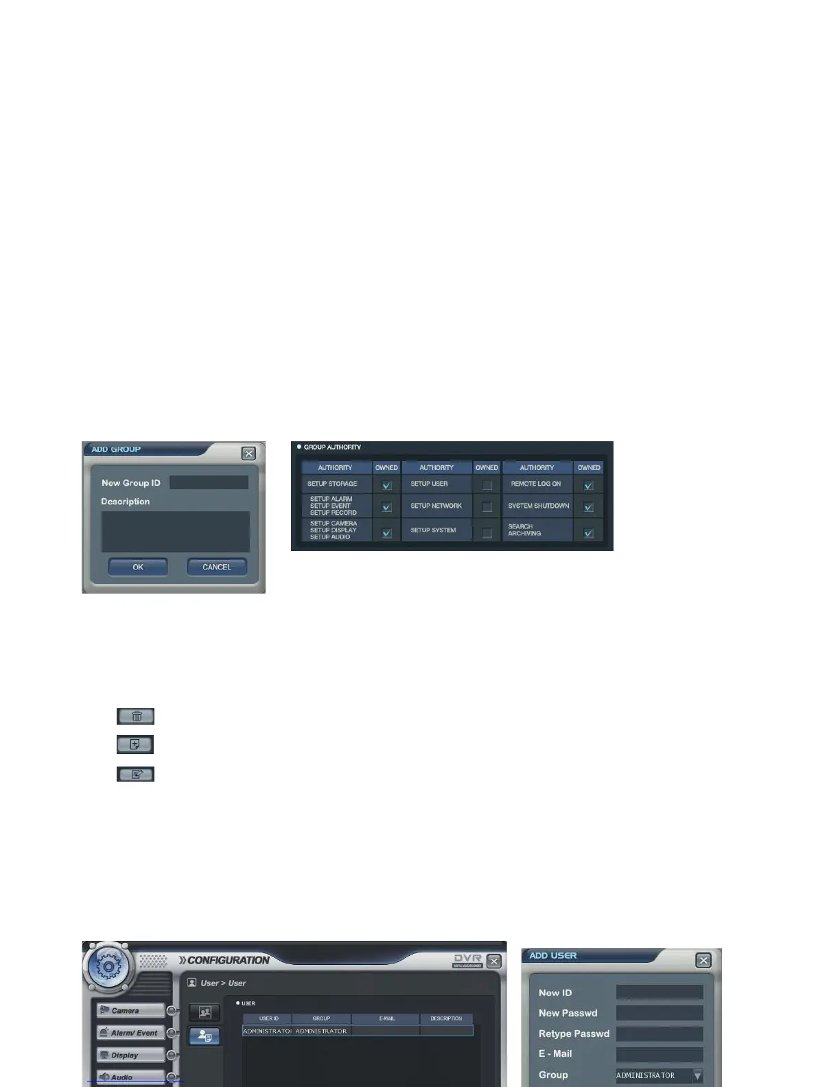 After selecting “ADD” button, the operator can make the new user group with new authority.