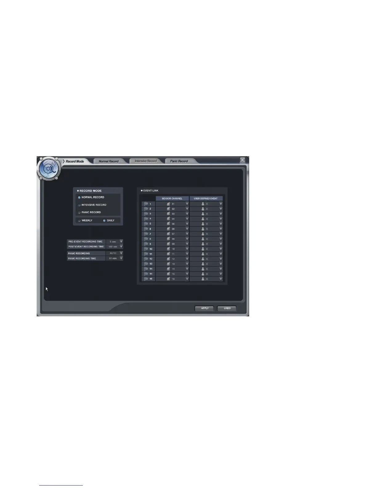 In case Normal Record is selected from record mode, the operator cannot enter Intensive Record setup.