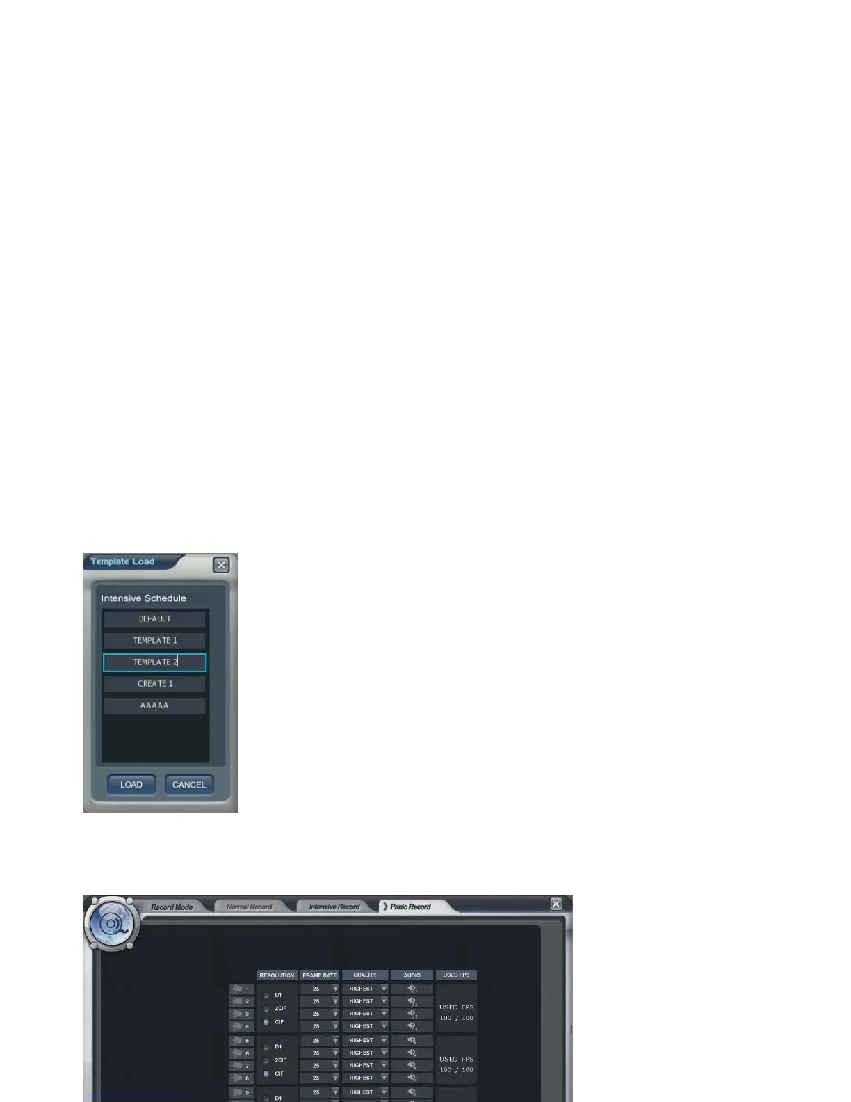Load Template: Load the recording setup that are already made.