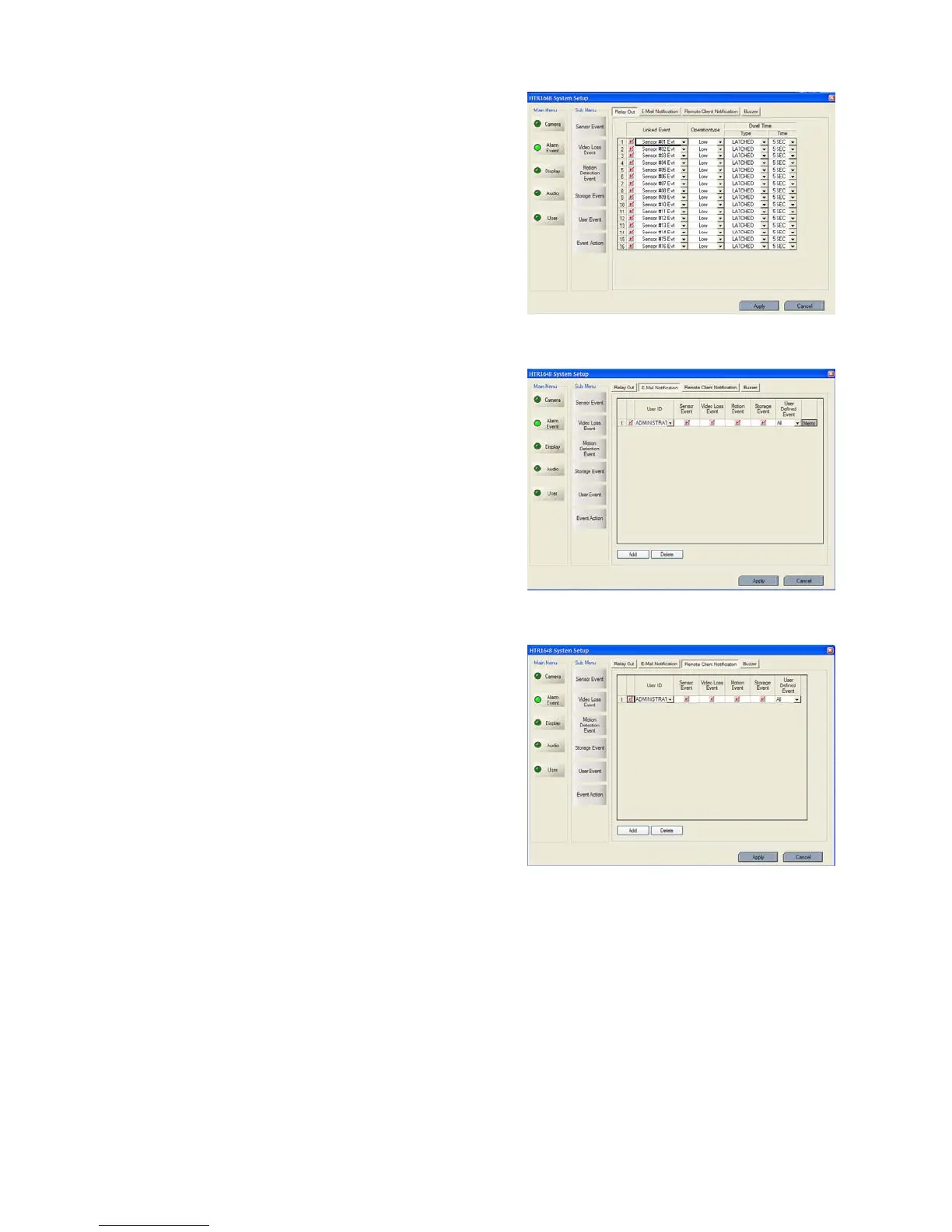 (Sensor (Alarm), Video loss, Motion, Storage and User