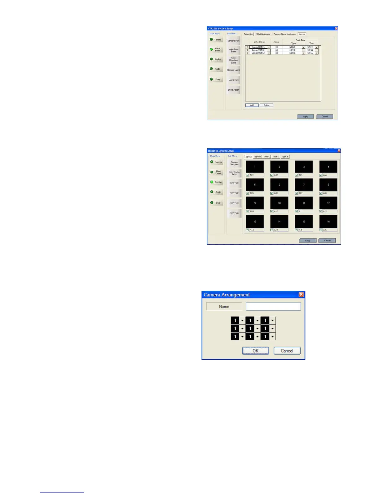 - After selecting the event (Alarm, motion, video loss, User