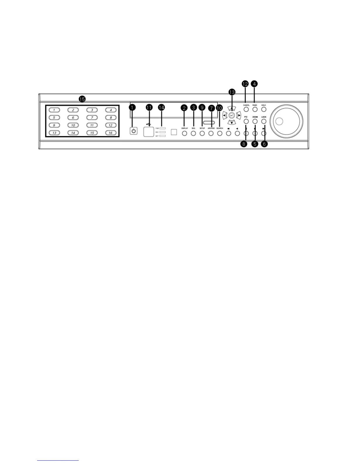 ⑮ Channel Selection Buttons (1~8/16) : Select Channel or Input Password