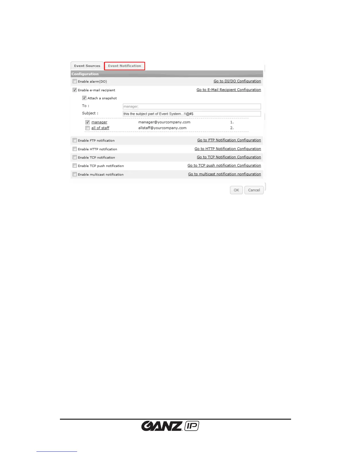 notification. To create a new recipient that is not on the list, go to Setup > Event Configuration