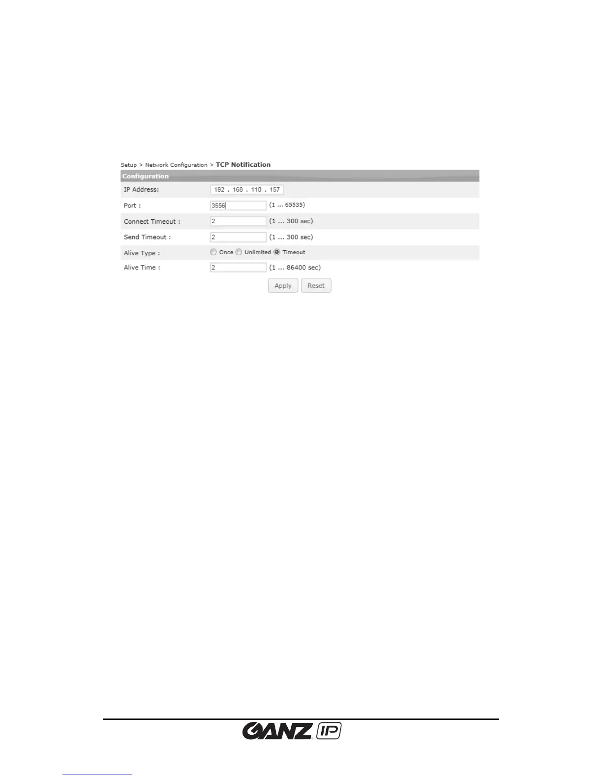 - Timeout: After the last data transmission if there is no event for setting time of alive