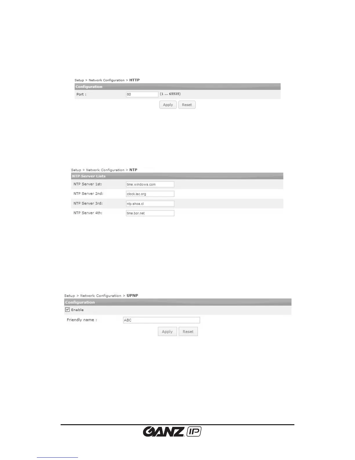 Users can set up to four NTP servers. To enable the NTP servers, DNS server setting must be
