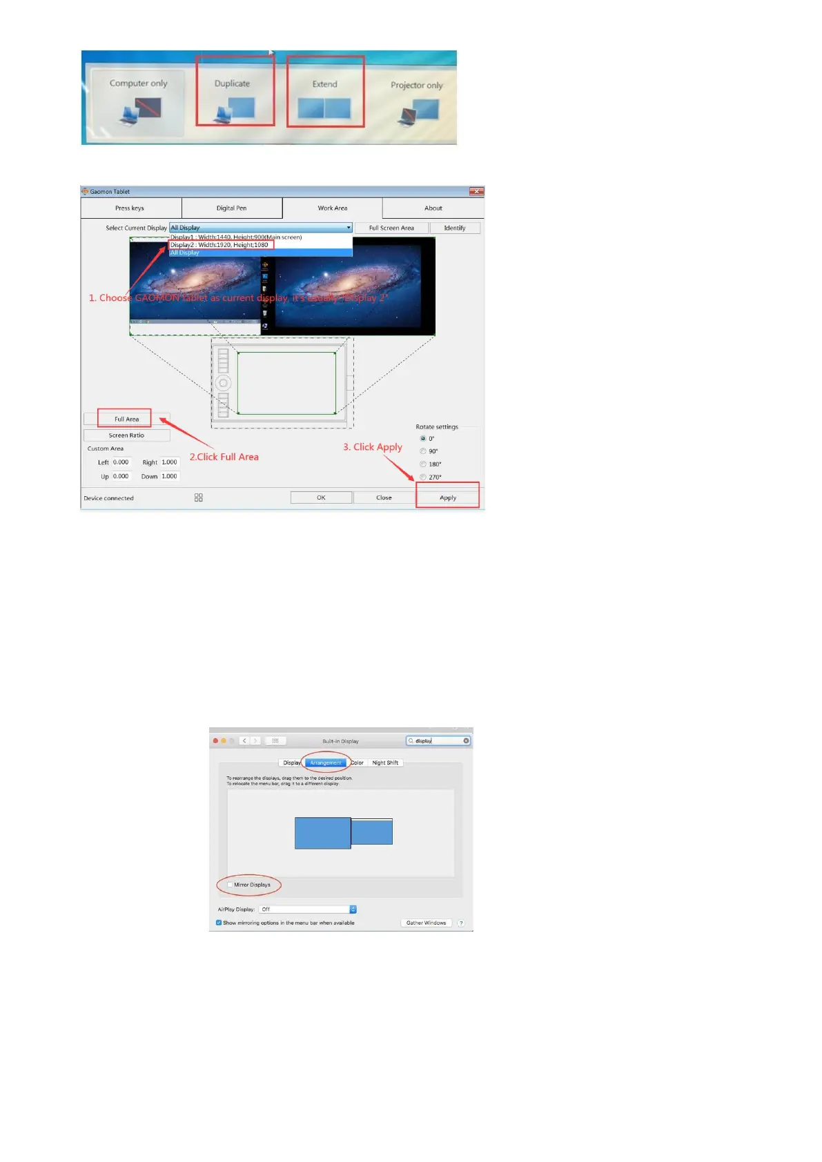 2 Open the GAOMON driver, choose GAOMON tablet as ‘’Current Display’’. it’s usually” Disaplay2”. Then