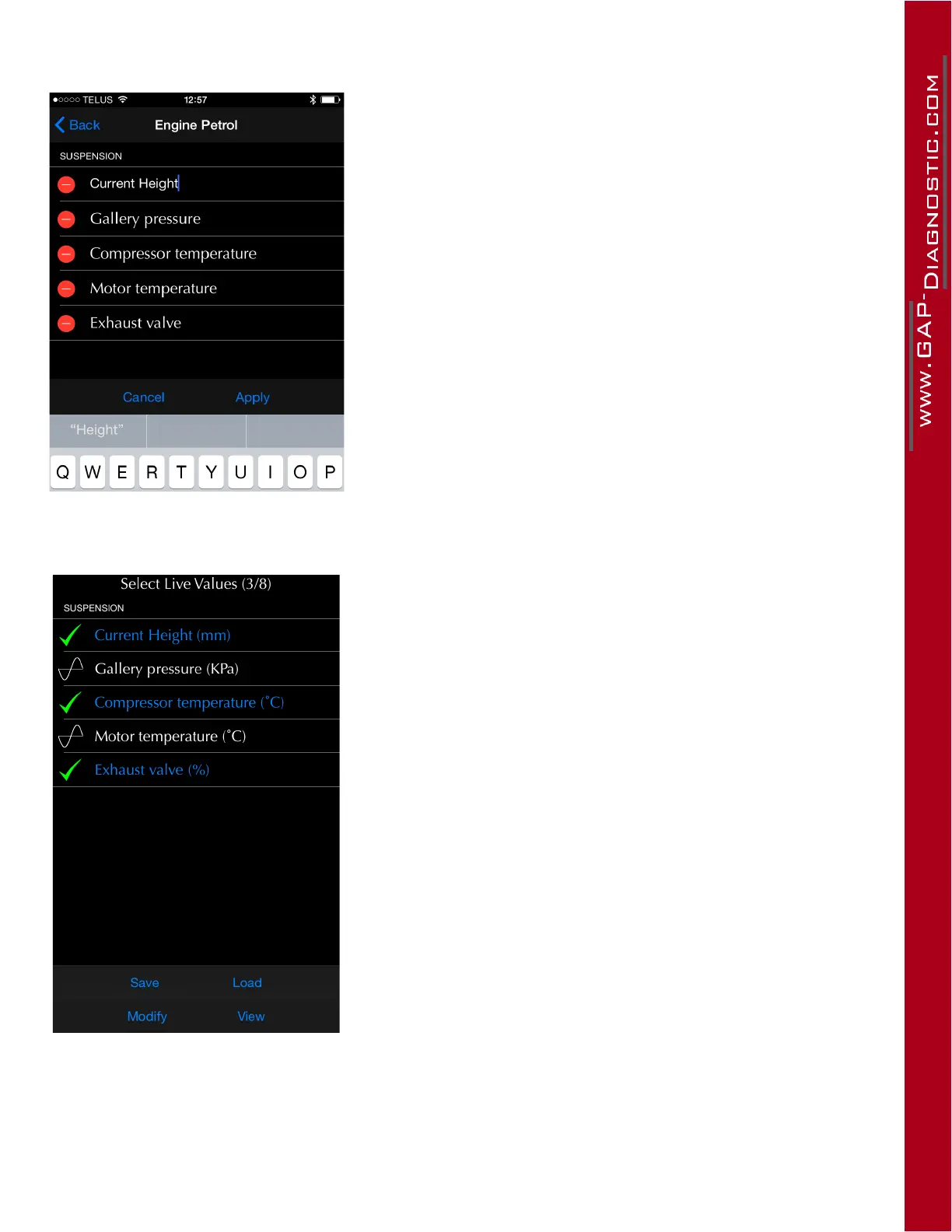Figure 71. App : LV : Favorite live values selection