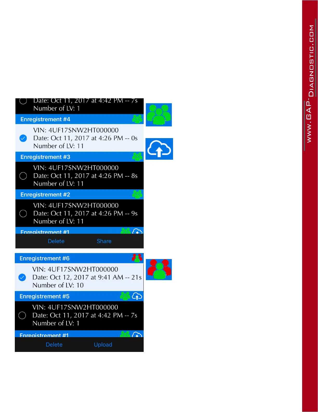 In the log section, select one or multiple logs and click on Share or Upload. Once completed, a copy