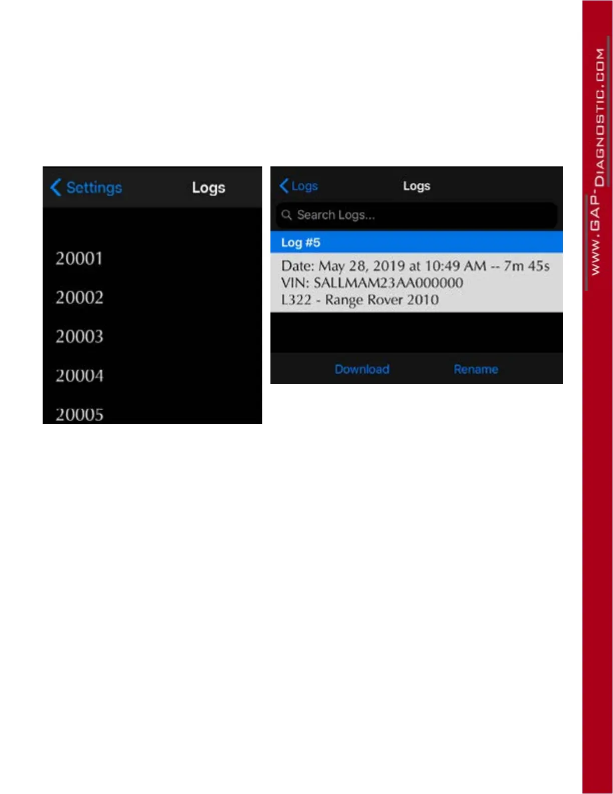 Click on Download to view the Log and Rename to change the log name. The name will be changed