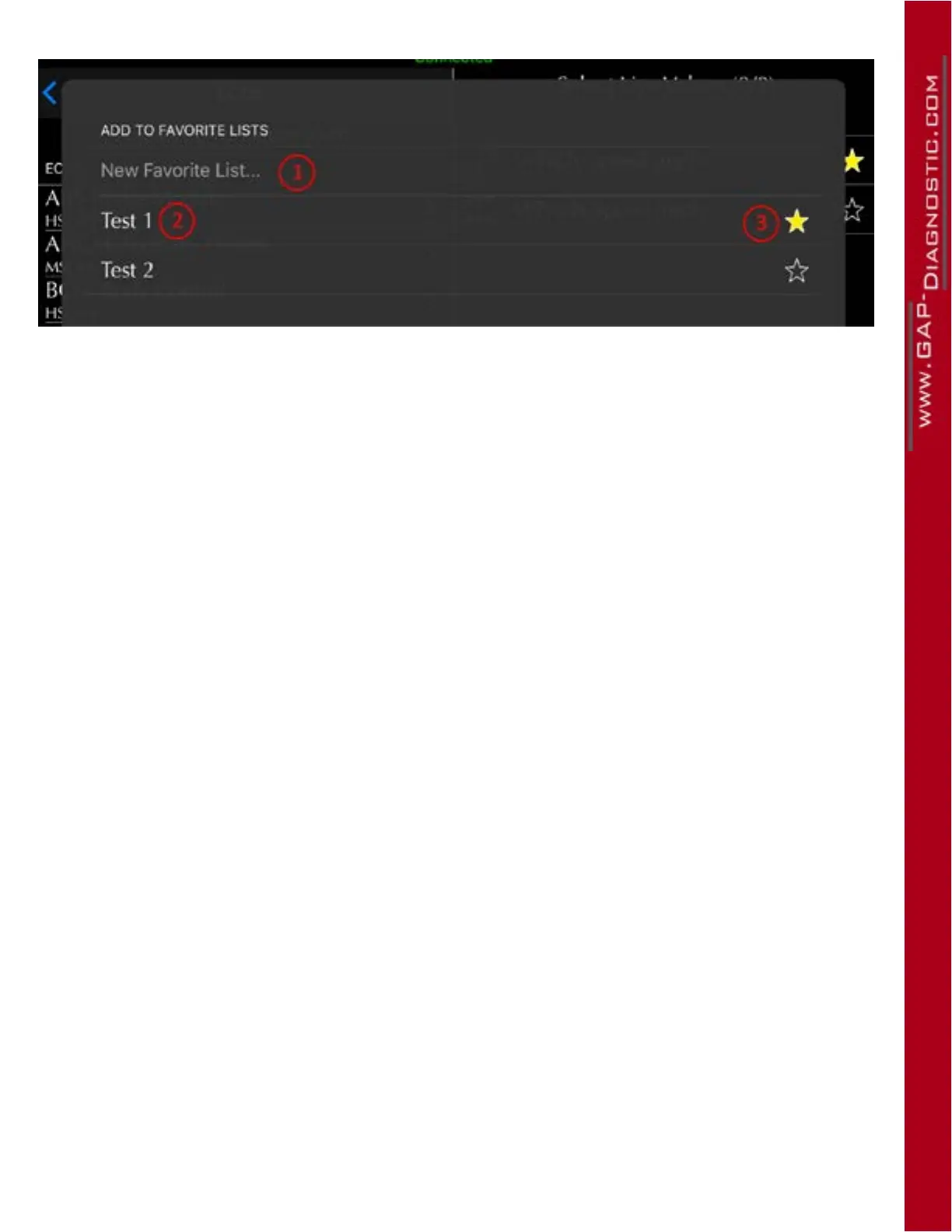 Figure 99. CCF : Favorite, Fast Add method. Selecting the list.