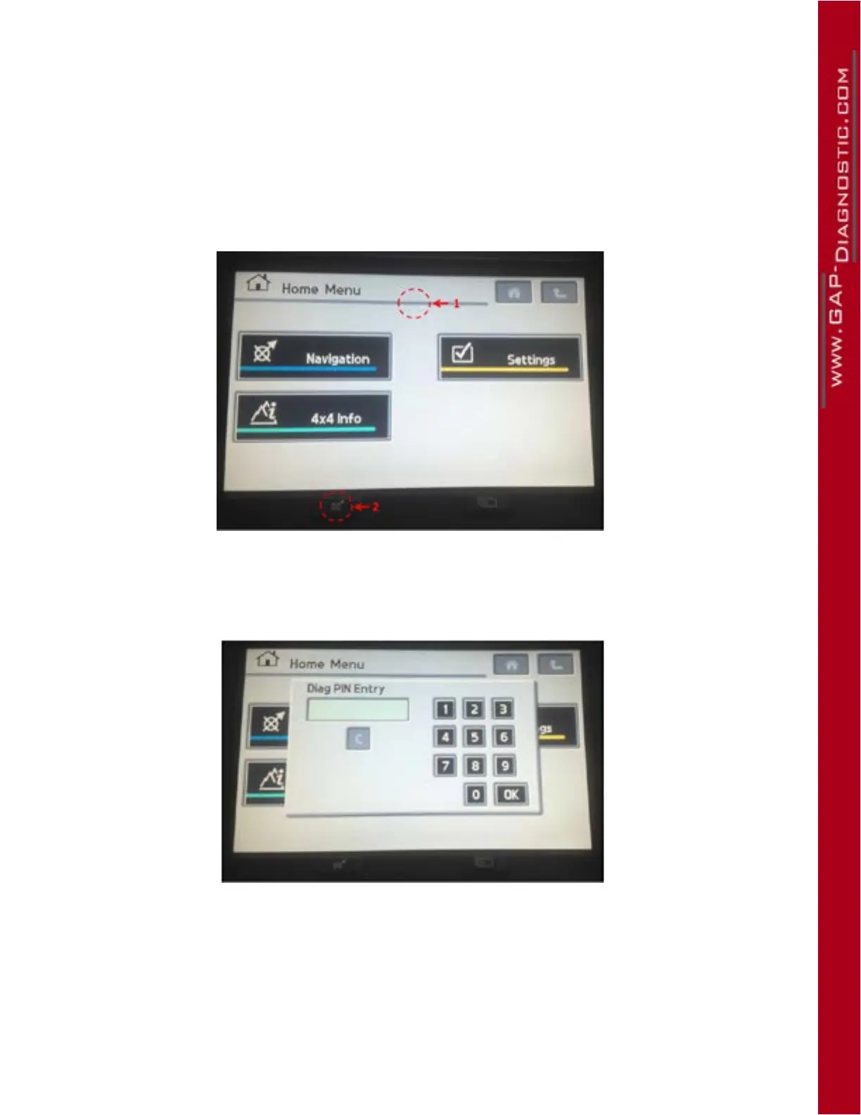 Figure 106. Enter pin code for diagnostic mode, Navigation