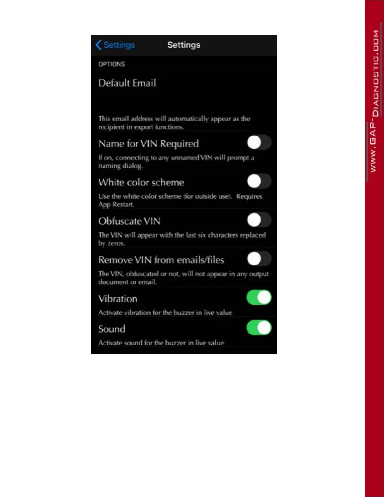 Gap Diagnostic IIDTool Pro G3 - Available Settings and Description