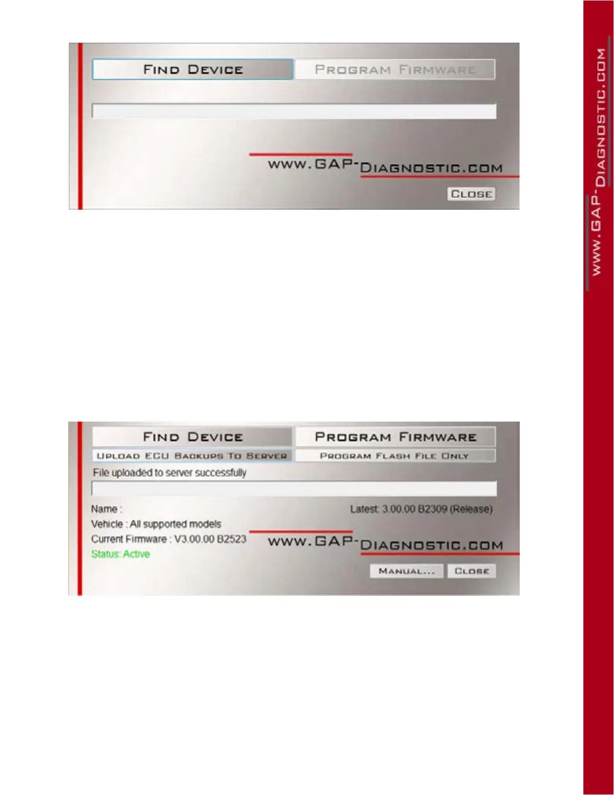 3- Click on “ FIND DEVICE ” and wait for pairing of the tool with the updater software. Once paired,