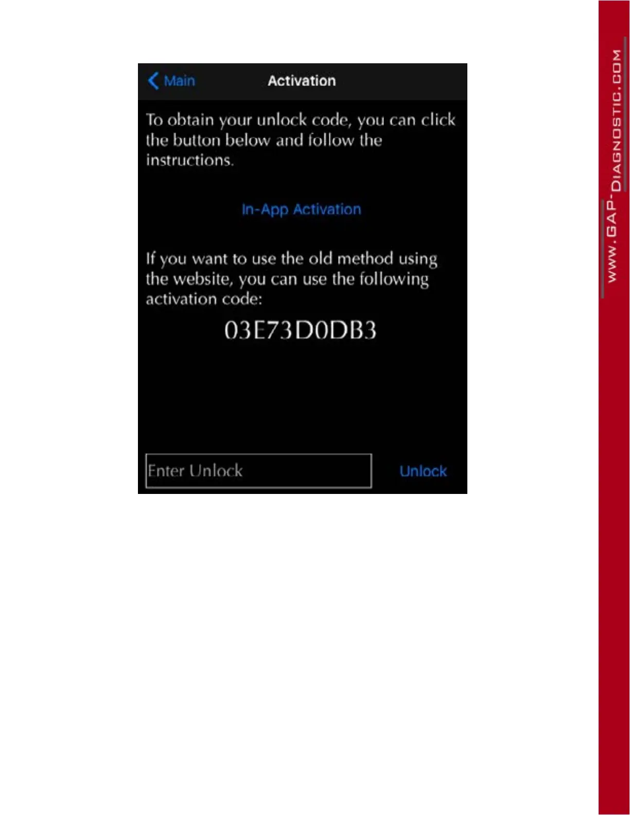 7- Click on “Activate” (right of vehicle information) to display the activation page.