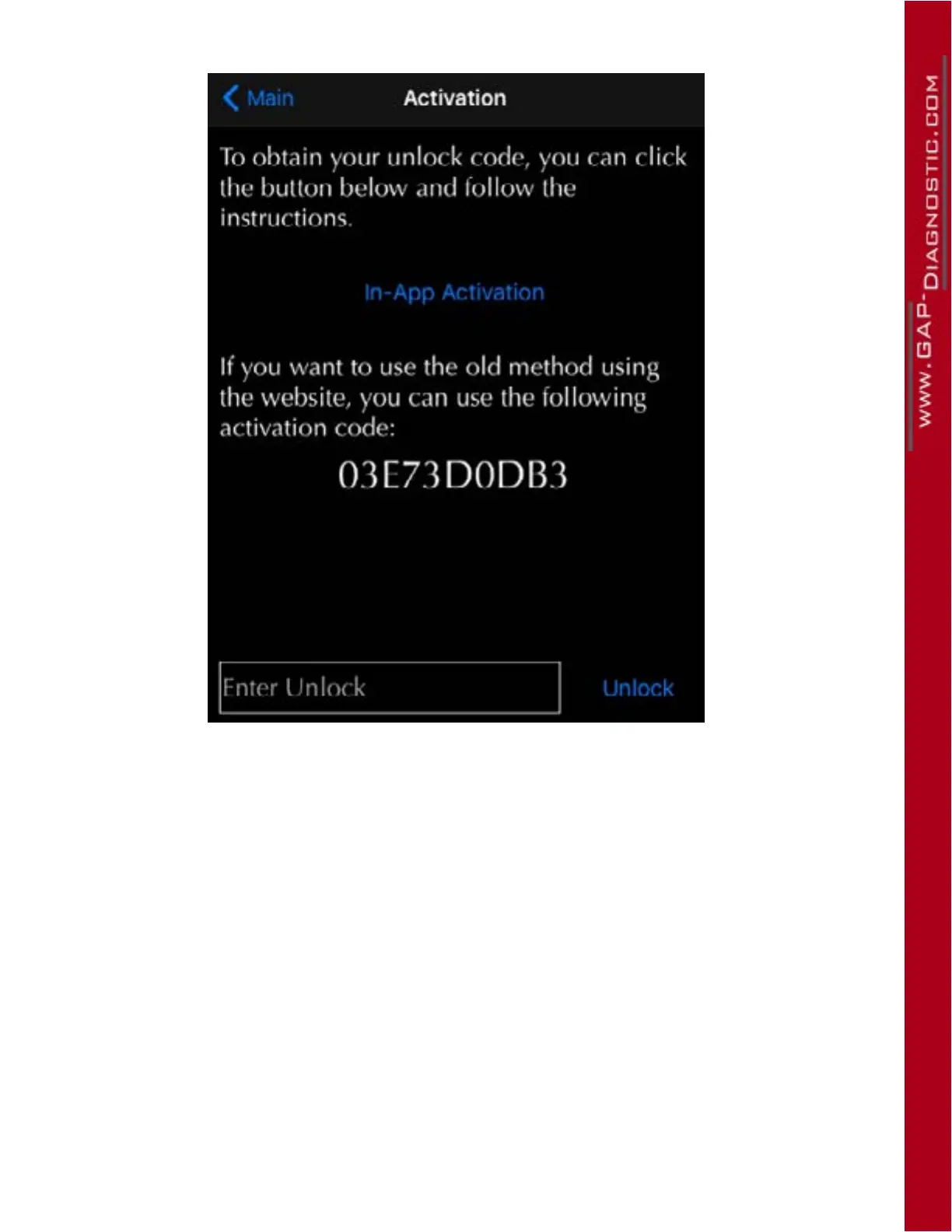 8- Since the mobile device is not connected to the Internet, note the 10 character activation code.