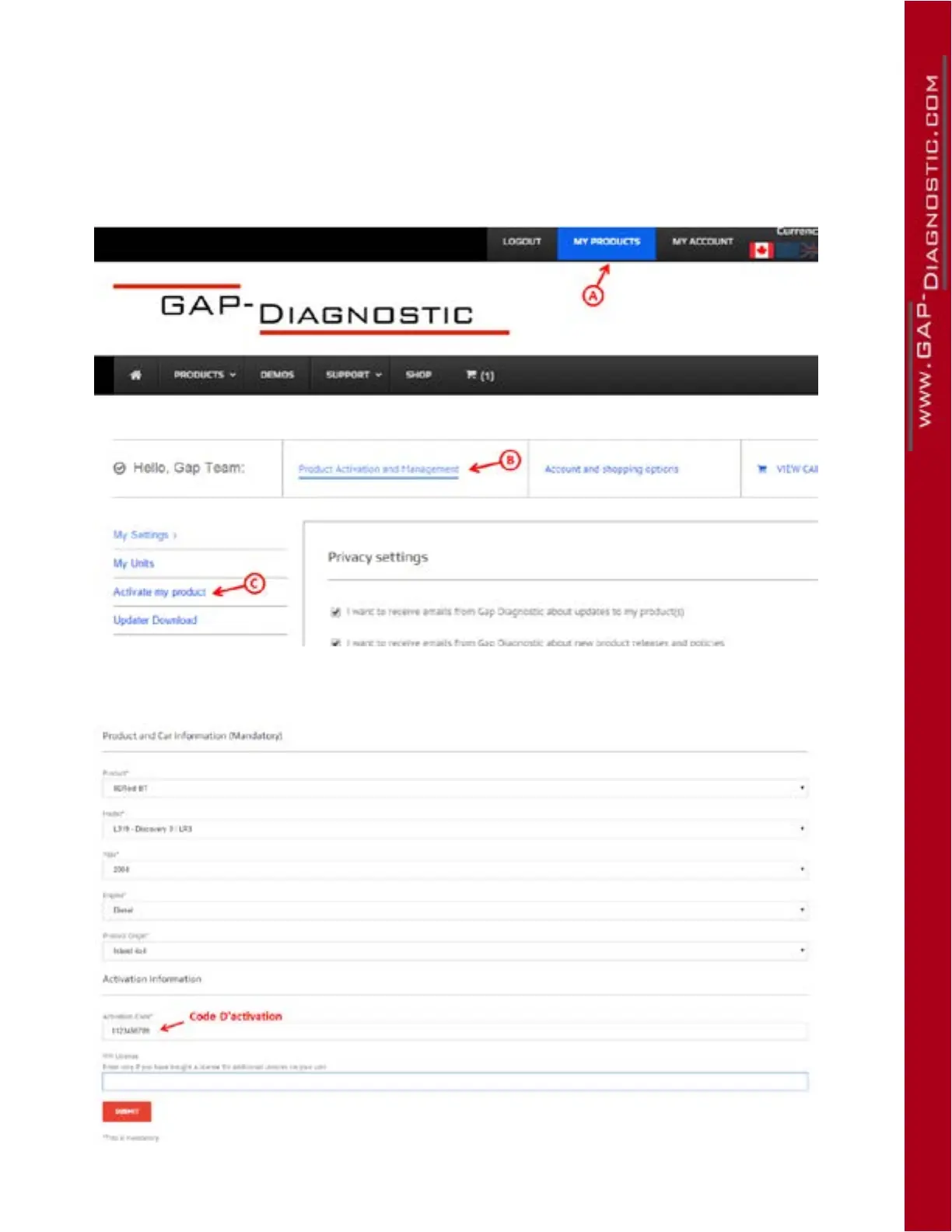 9- Log onto the website (“Login”) and follow instructions given by the following image (A, B and C)