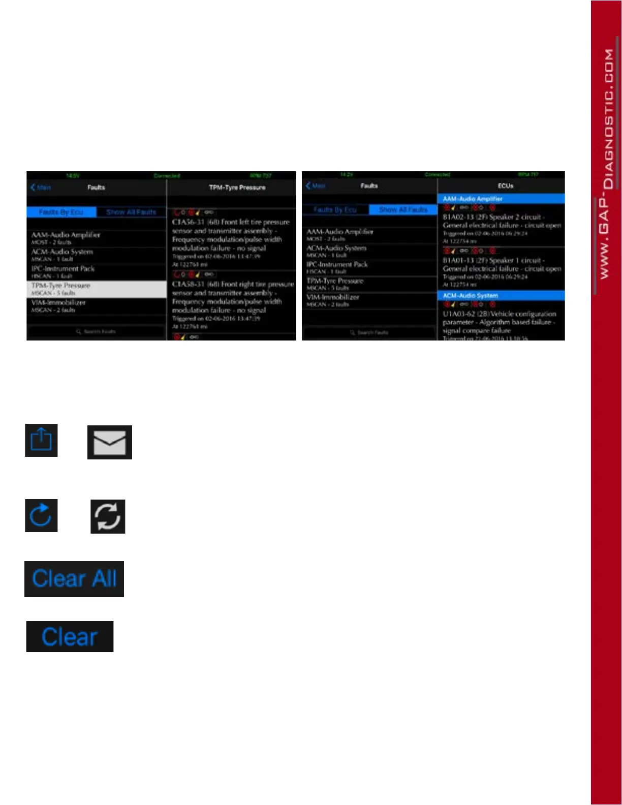 presence of faults. Following the scan, you can either view the complete list of faults or the list of ECUs