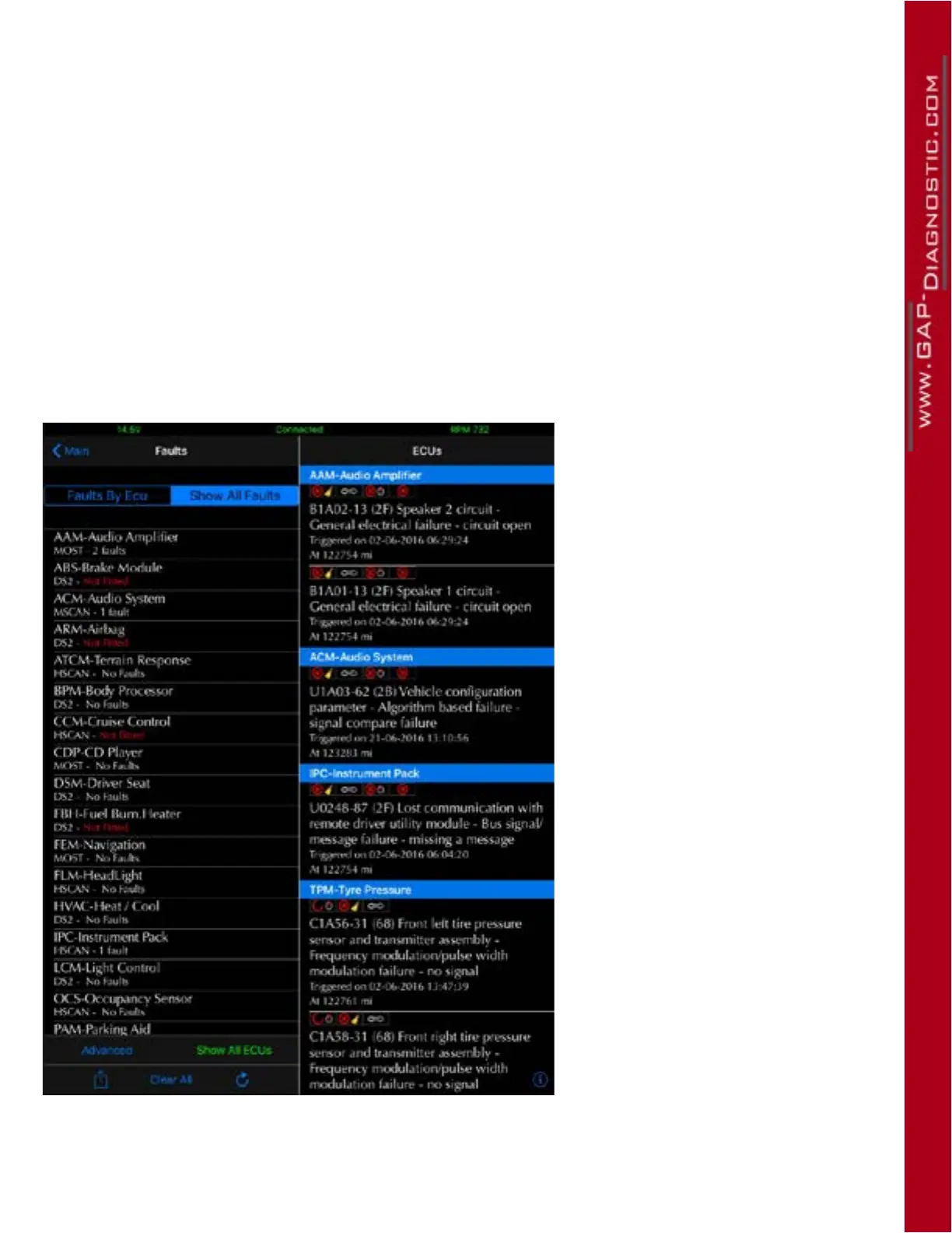Note : Not available on all faults and ECUs. Not implemented by the manufacturer Jaguar Land Rover