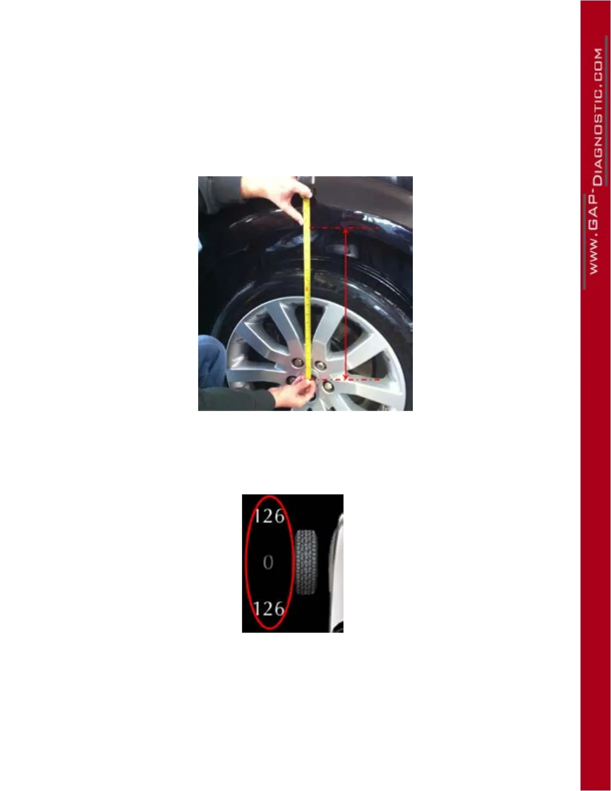 • Measurements of each corner are made from the bottom of the wheel arch to the center of