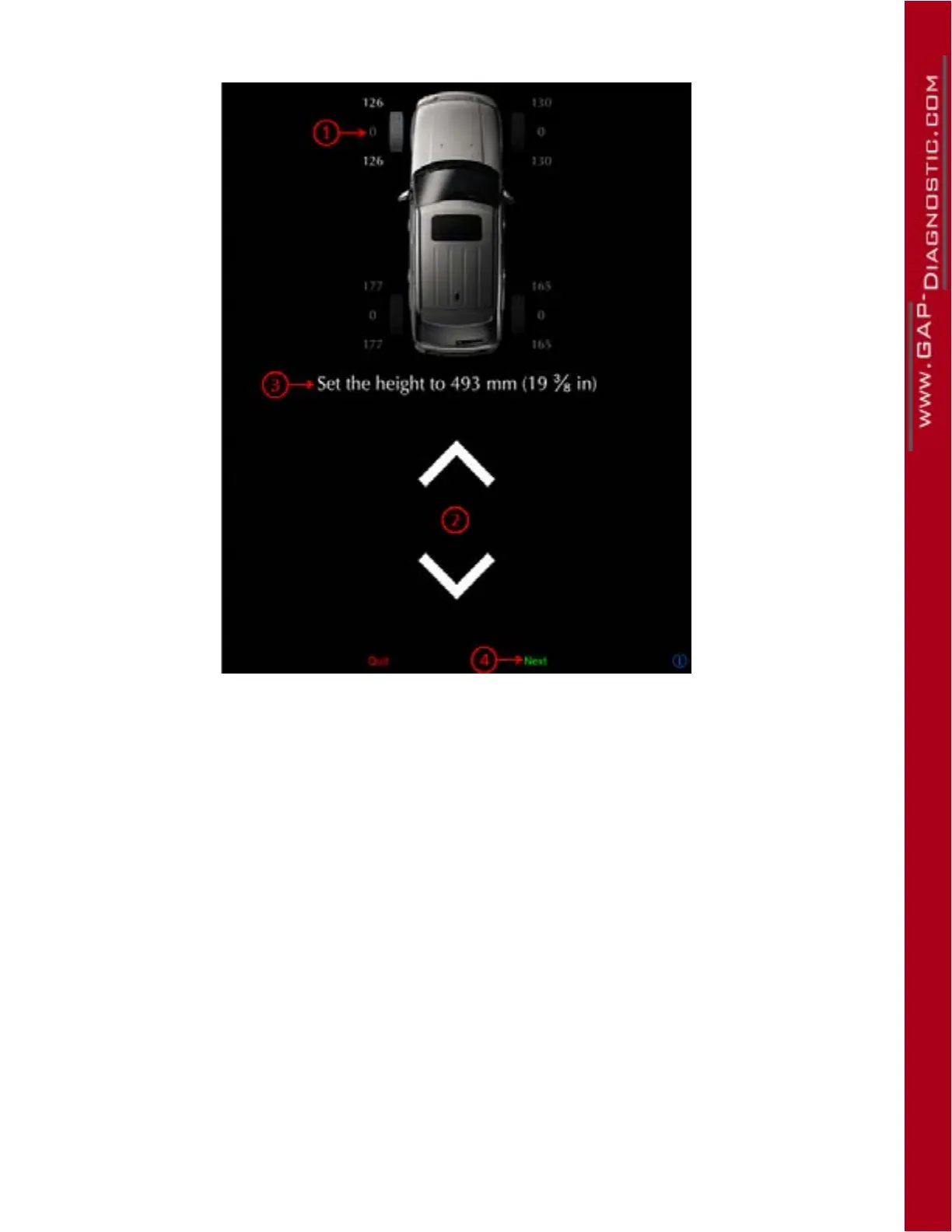 • The rst corner to be calibrated is the front left corner (1).