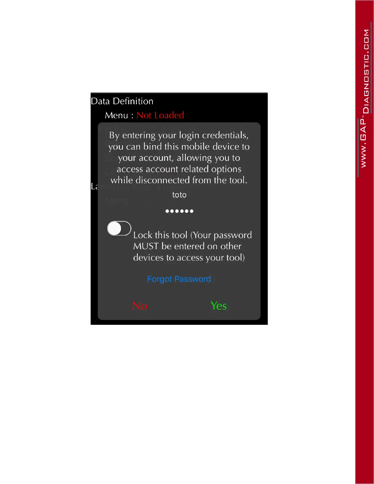 Locking the tool will prevent other users from connecting to the tool using another mobile device unless