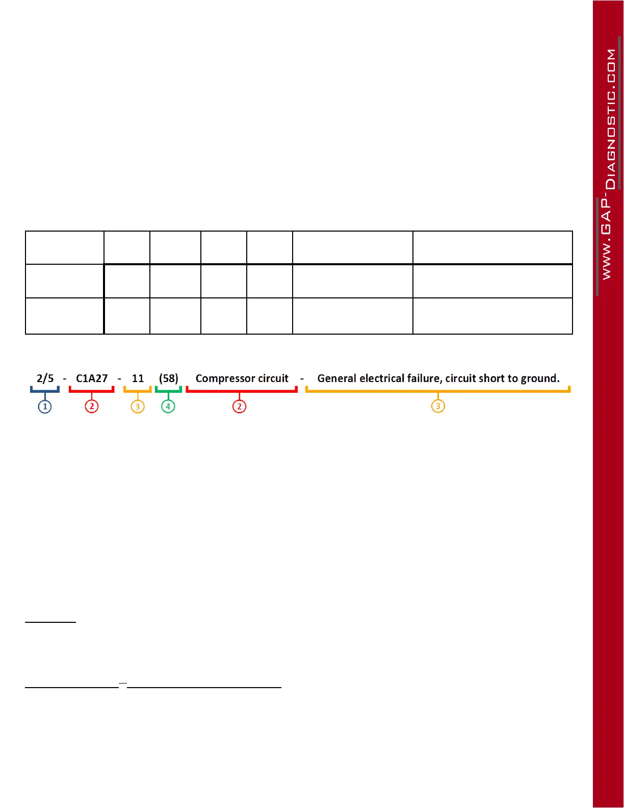 character : Letter indicating the system on which the fault relates to (see table on next page)
