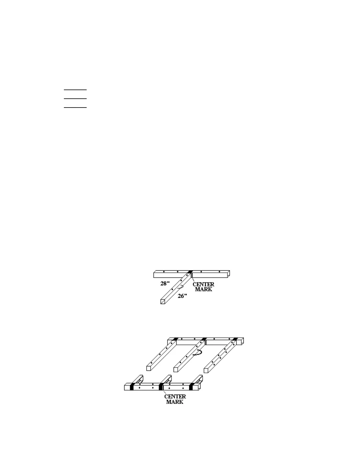 1) Locate the 26” pieces with the 1/8” holes and place them opposite each other and between the 28” tubes with