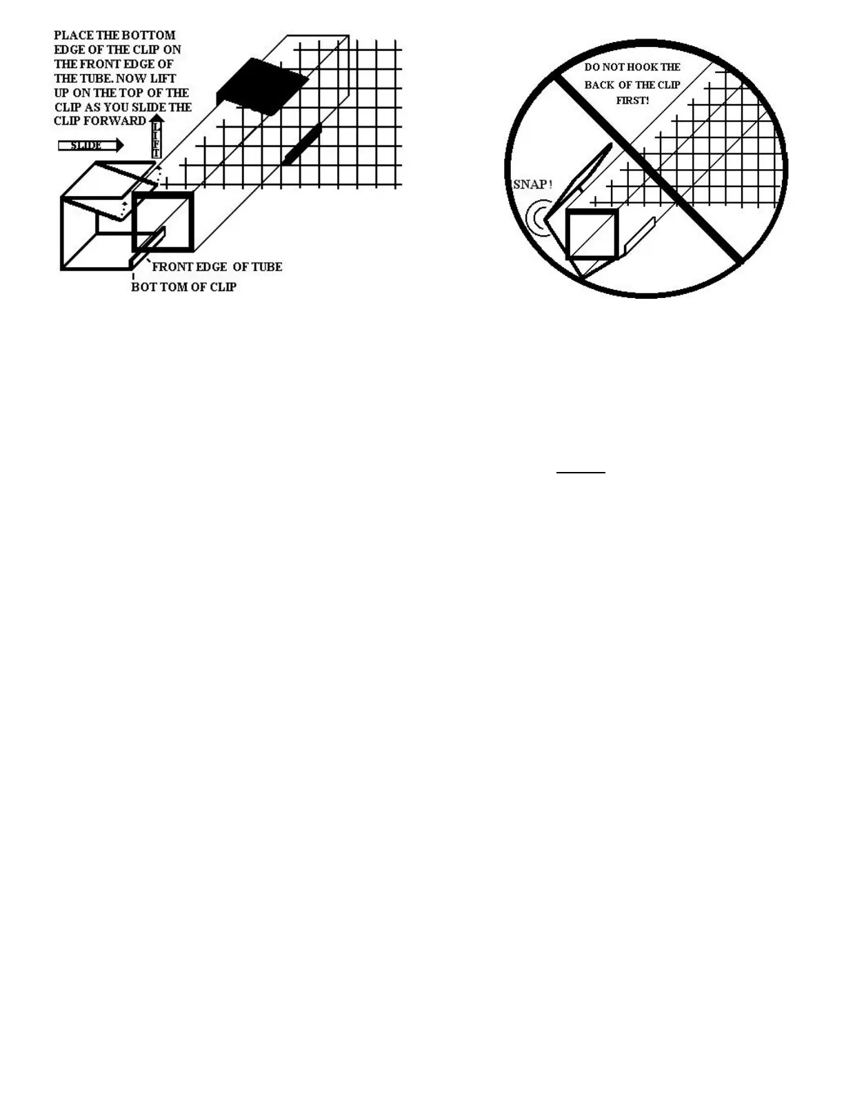 reapplying otherwise they may snap. It is suggested you practice placing a clip on the 1” x 1” box beam without