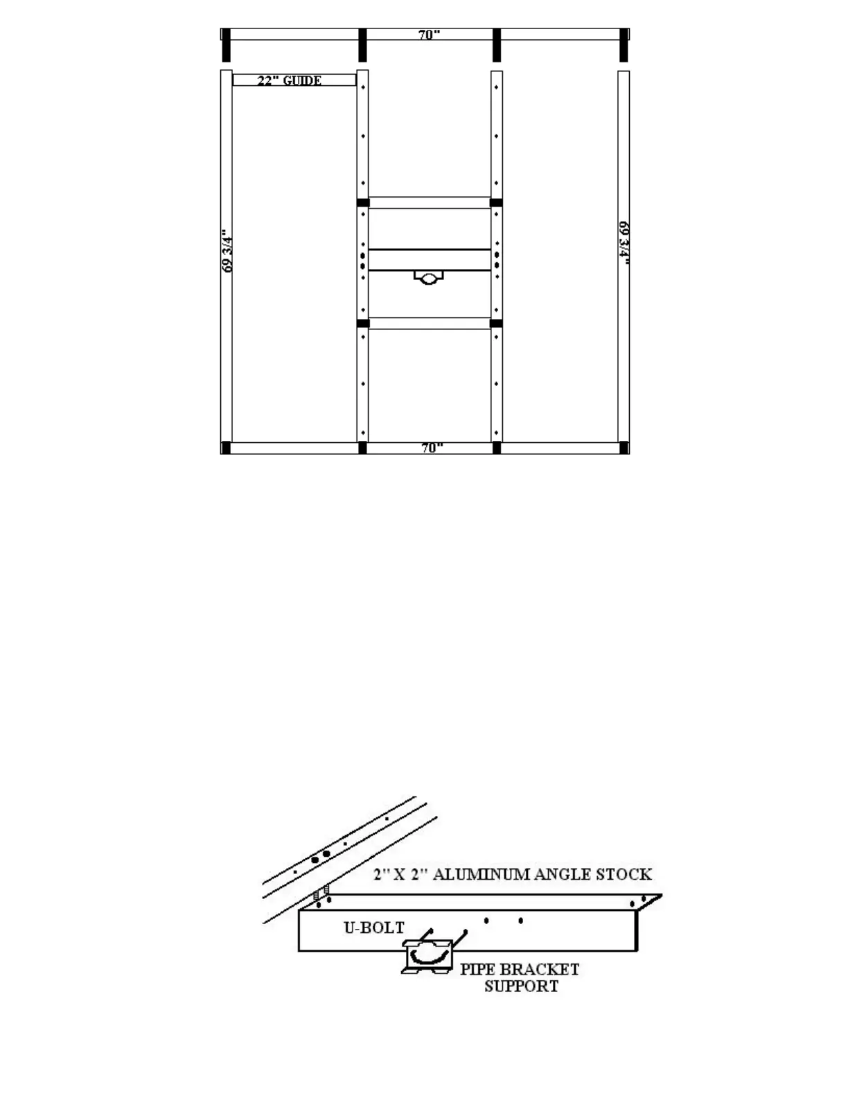 angle aluminum bracket. Attach the pipe support bracket to the 2”x 2” angle aluminum bracket with one of the U-bolts.