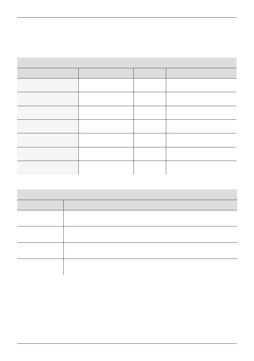 The following table shows the various light signals generated by the control unit with their meaning