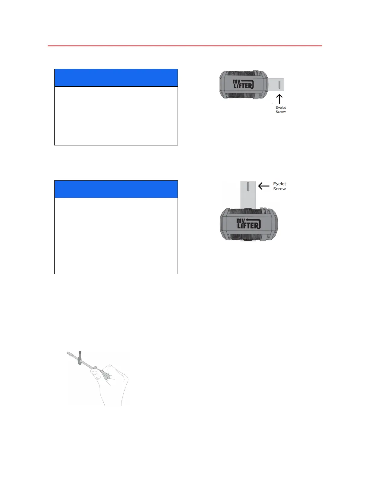 Placing the eyelet screw two inches from the lifter ensures that the cables will be
