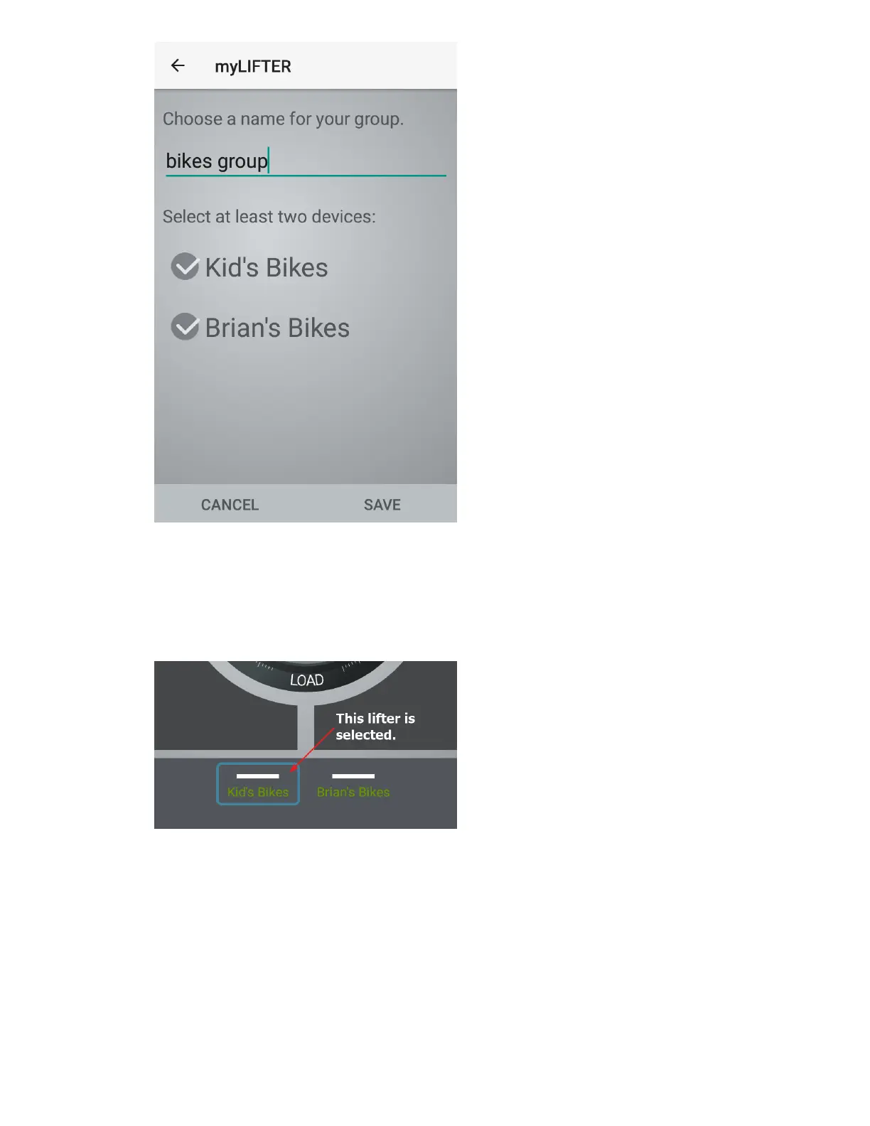 6. Tap the name of another lifter repeat step 5 until all of the cables on all lifters in