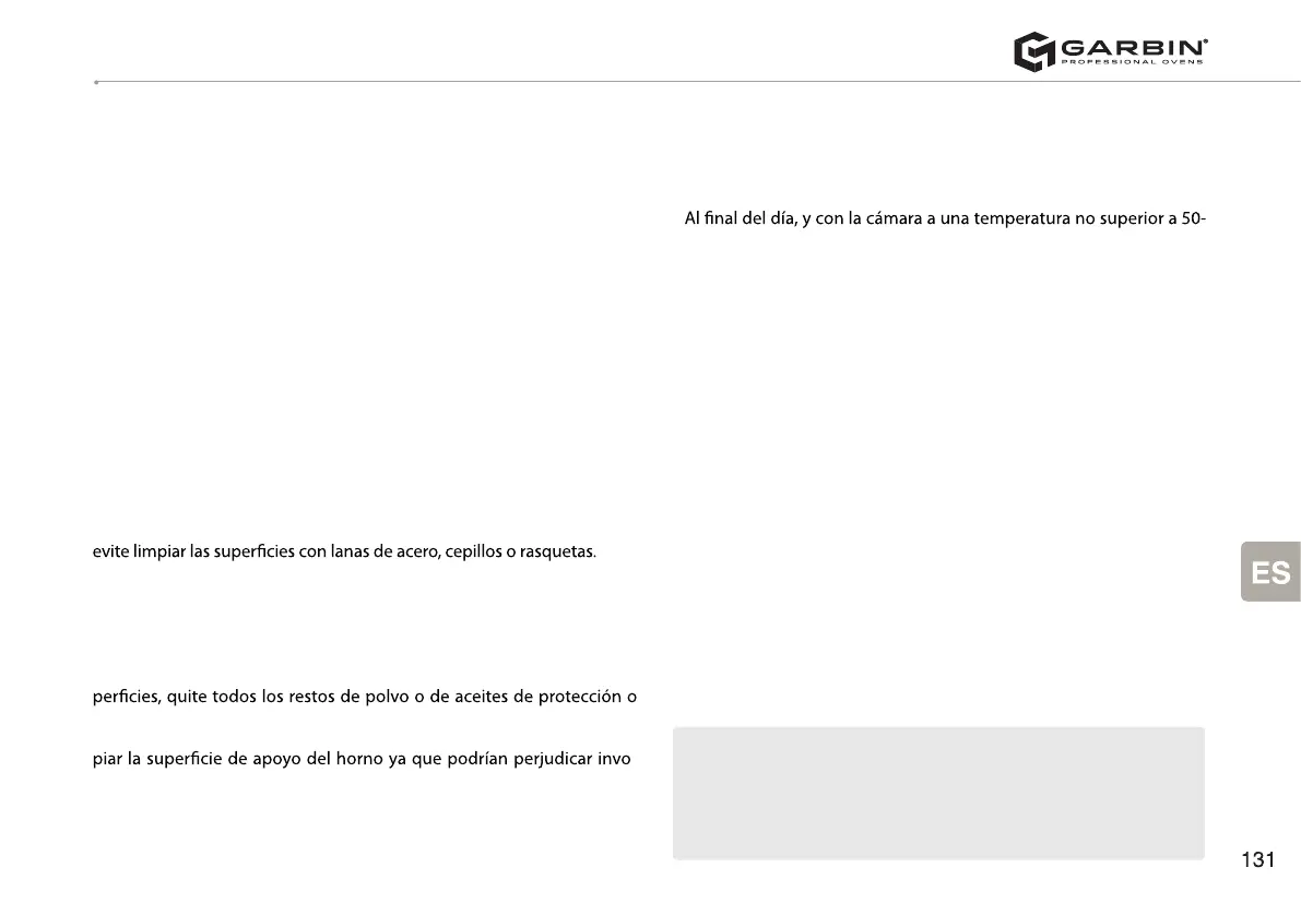 • Los hornos tienen que limpiarse periódicamente para garantizar los