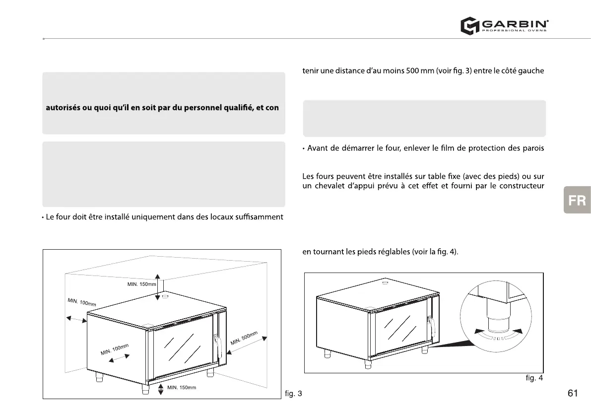 c) Durant l’installation sur table, pourvoir à la mise de niveau du four