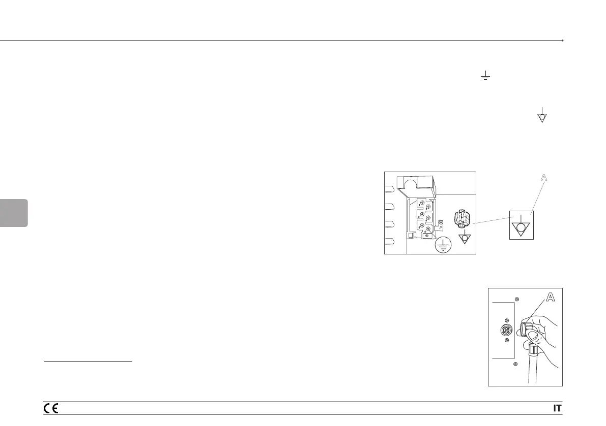 • Il filo giallo/verde del cavo d’alimentazione, deve essere fissato al