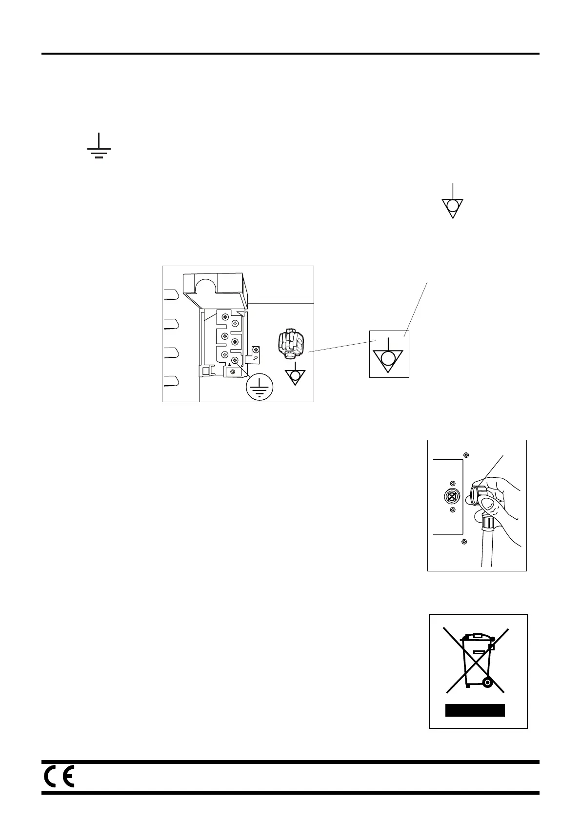 • El hilo amarillo/ verde del cable de alimentación tiene que quedar fijado a la bornera marcada con el