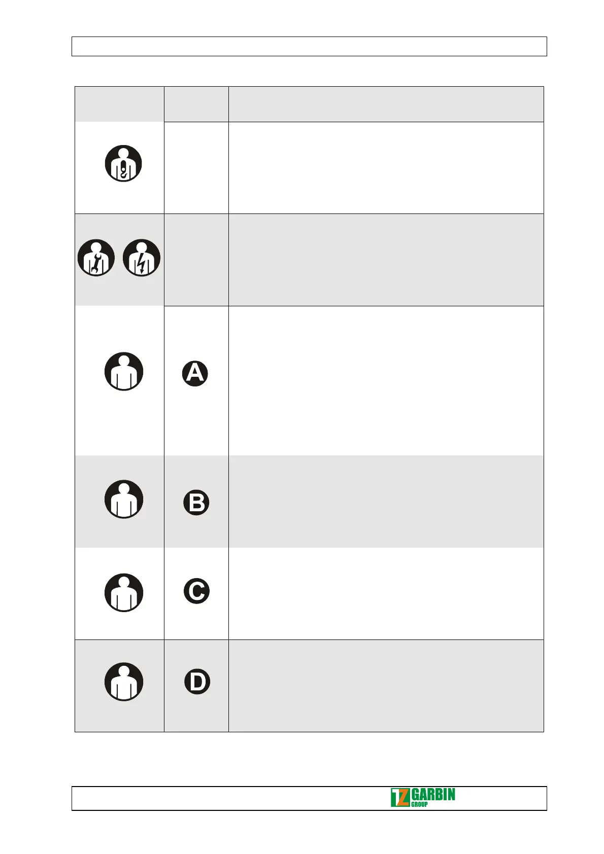 TAB. 14 (Description of the positions occupied by authorised operators)
